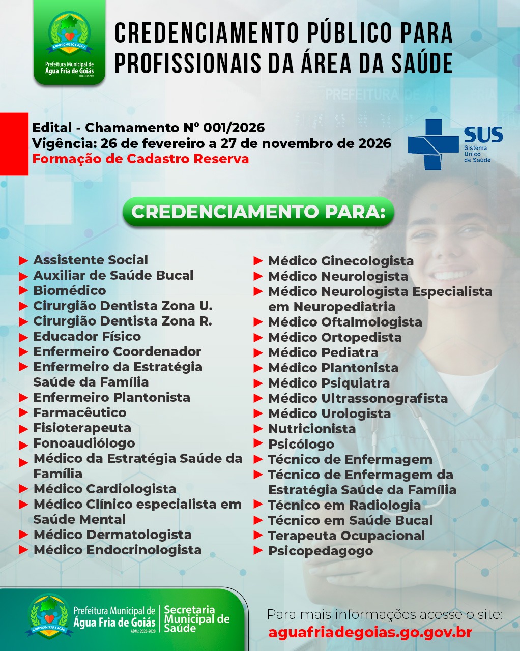 Edital – Chamamento N° 001/2026Vigência: 26 de fevereiro à 27 de novembro de 2026Formação de cadastro reserva